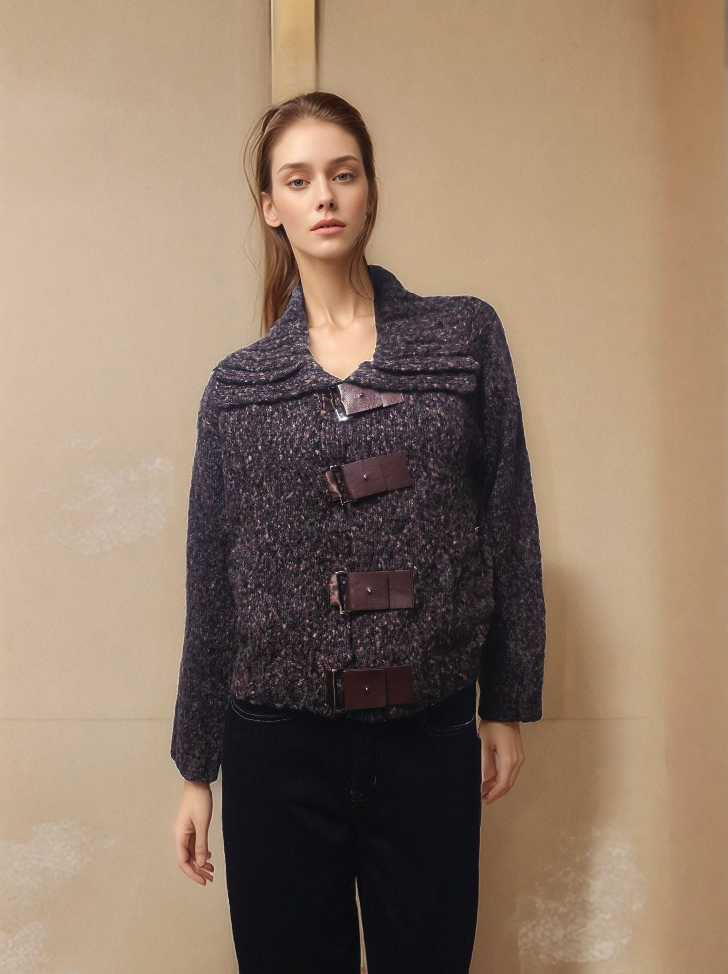 Giacca tricot con fibbie